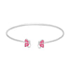 Bring a touch of whimsy to your style with this charming open bangle crafted in solid 925 sterling silver. Each end features a playful butterfly highlighted with vivid pink enamel, adding a cheerful pop of color. Designed with a sleek, adjustable silhouette, this bracelet is perfect for kids, teens, or anyone who loves fun, youthful jewelry.
