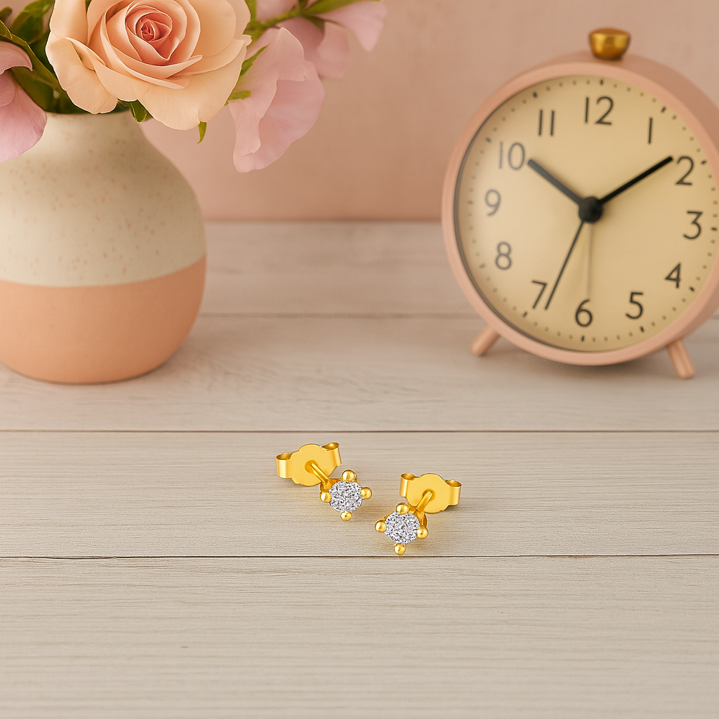 A true jewelry essential, these round solitaire stud earrings feature sparkling cubic zirconia stones set in 925 sterling silver with a radiant gold-plated finish. The clean 4-prong setting enhances brilliance while offering a secure hold, making them perfect for both everyday wear and special occasions.