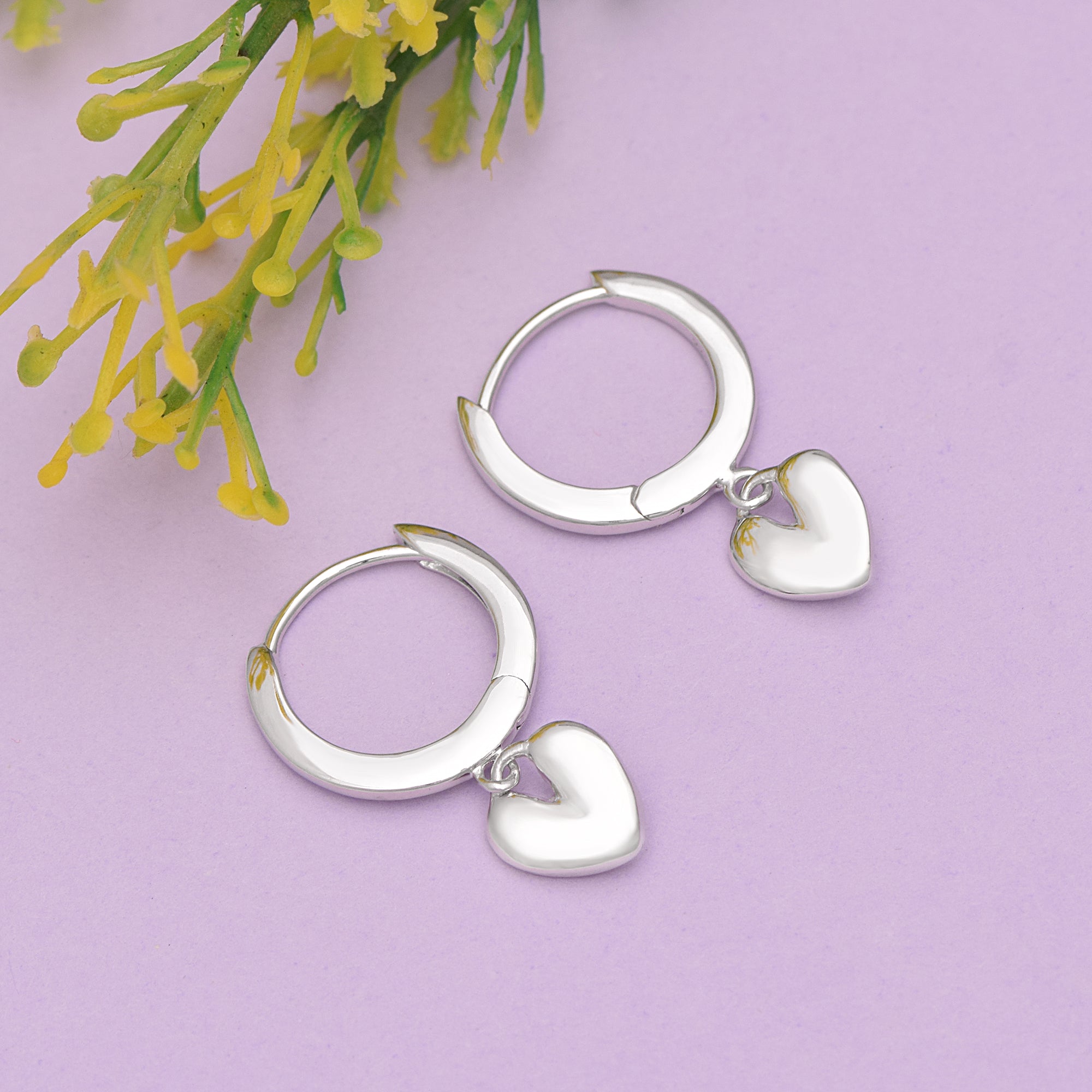 Add a touch of romance and sophistication to your look with these minimalist hoop earring, crafted from solid 925 sterling silver. Each sleek hoop features a smooth, dangling heart charm that moves beautifully with every turn. Lightweight and versatile, these earrings are perfect for both casual and formal occasions, offering understated elegance that never goes out of style.