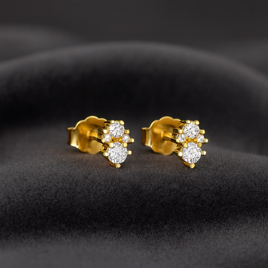 These dainty double-stone studs bring understated sparkle to your everyday style. Crafted from solid 925 sterling silver and finished with luminous gold plating, each earring showcases two brilliant-cut CZ stones in an elegant vertical twin setting. Their simple yet radiant design makes them ideal for layering or wearing solo for a subtle, polished look.