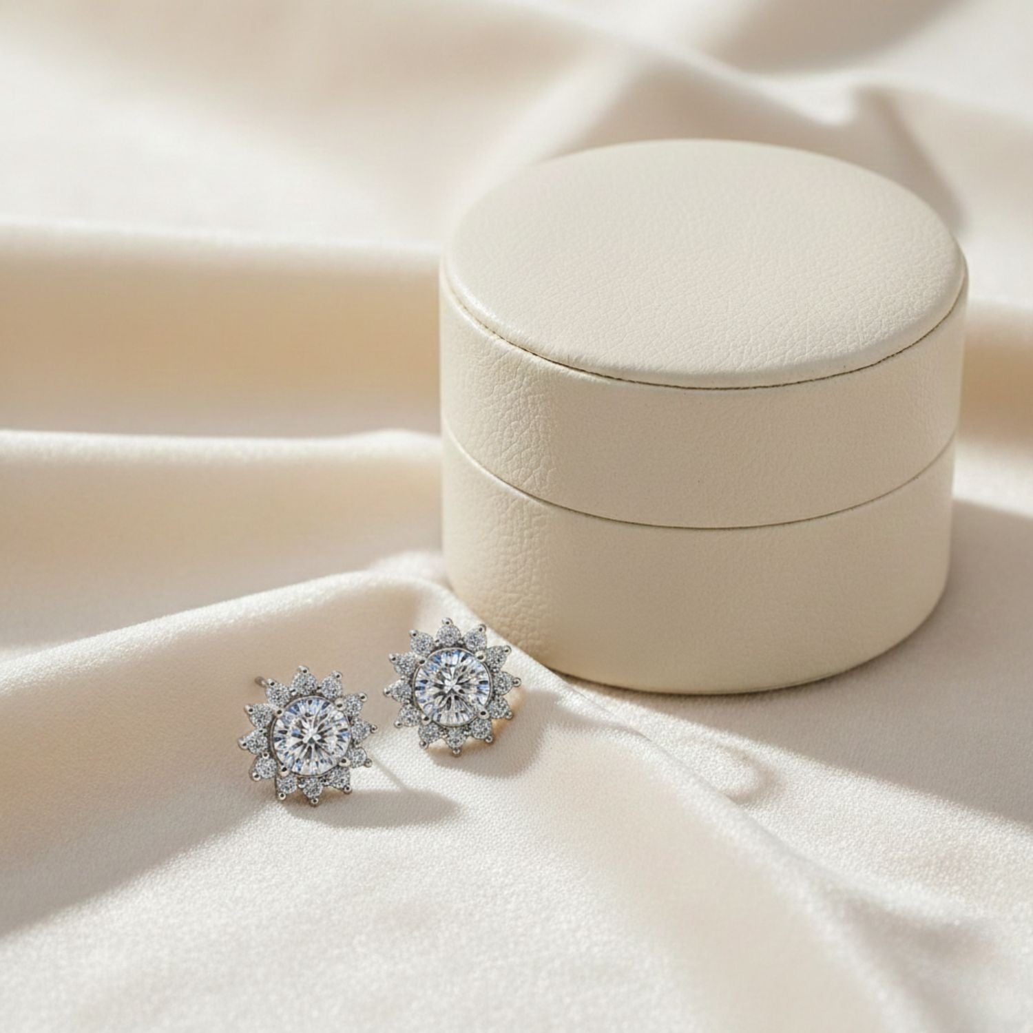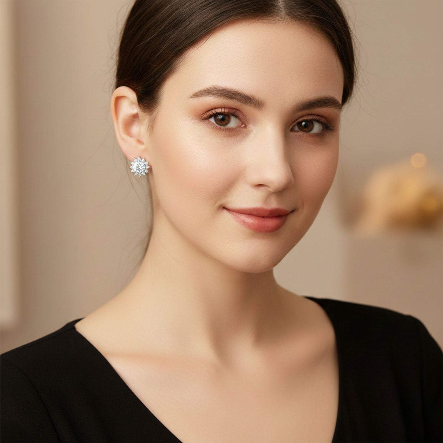 These stunning halo stud earrings showcase a brilliant 6.50×6.50 mm round white cubic zirconia at the center, beautifully framed by a radiant floral halo of smaller CZ stones. Crafted in solid 925 sterling silver with a high-polish white finish, the cluster design enhances brilliance and adds timeless charm. Perfect for everyday elegance or special occasions, these earrings offer a luxurious look at an affordable value.