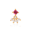 This radiant nose pin blends traditional design with clean geometry. Made in 925 sterling silver and finished in a lustrous gold plating, it features a striking square-cut red CZ at the top, accented by a delicate fan cluster of white CZ stones. Perfect for festive styling or daily elegance, it adds a confident pop of color and heritage charm.