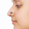Celebrate timeless elegance with this oxidized nose pin, meticulously crafted in solid 925 sterling silver. Featuring a stunning sunflower-inspired design, it showcases delicately etched petals radiating from a bright white center stone. The antique finish highlights the intricate details, making it a perfect accessory to enhance both ethnic and contemporary looks.