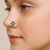 This elegant nose pin features an intricate swirl floral pattern, meticulously crafted in 925 sterling silver. At its center sparkles a brilliant white gemstone, adding a subtle shine to the oxidized finish. A beautiful blend of vintage charm and everyday wearability, perfect for ethnic ensembles or adding a unique accent to modern styles.
