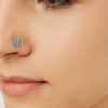 Elevate your traditional style with this oxidized sterling silver nose pin, artfully designed with two striking vertical lines of white cubic zirconia. Set on a detailed round base, this nose pin beautifully blends antique charm with modern sparkle, making it a versatile accessory for ethnic outfits or festive occasions.