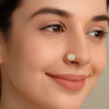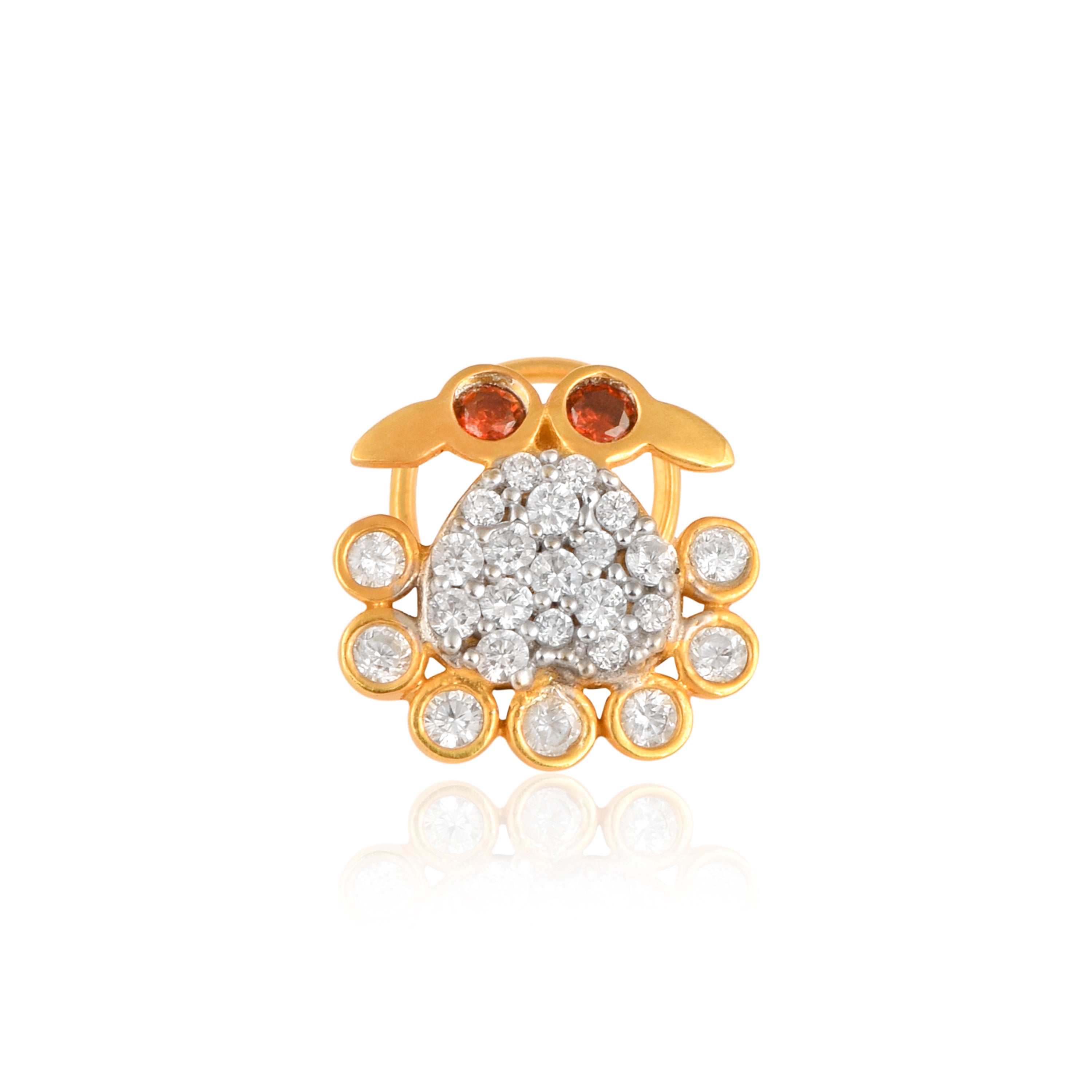 Show off your fun and quirky side with this crab-themed designer nose pin crafted from 925 sterling silver and finished in radiant gold plating. The body sparkles with clustered white CZ stones while the bright garnet gemstone eyes add a vibrant pop of personality. A charming piece for zodiac enthusiasts (Cancer sign), ocean lovers, or anyone seeking a standout accessory.
