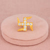 Honor heritage and spirituality with this Swastik symbol nose pin, crafted from 925 sterling silver and richly gold-plated. The design features the auspicious Swastik form, adorned with sparkling white CZ stones that enhance its divine appeal. A meaningful accessory perfect for religious occasions, temple visits, or festive rituals.