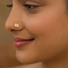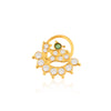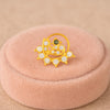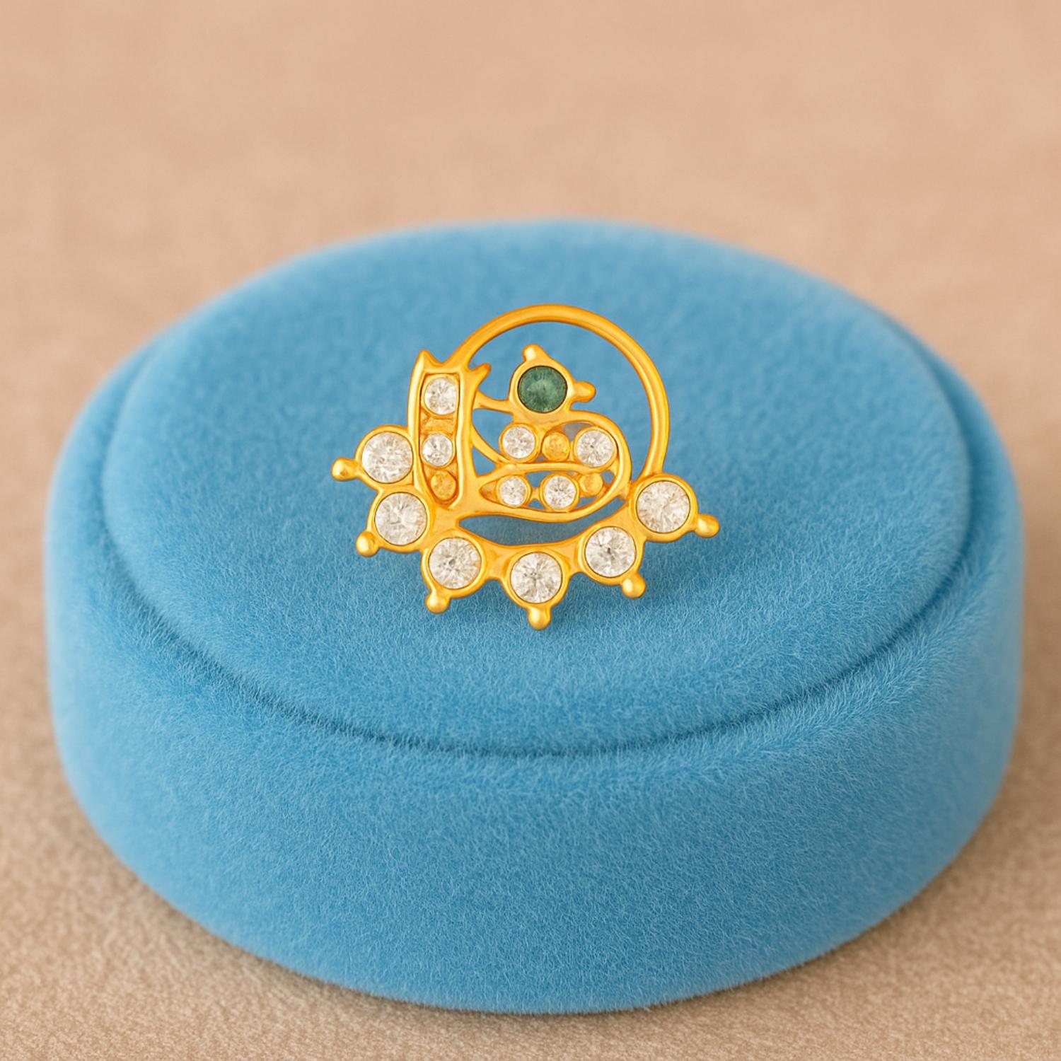 This stunning gold-plated nose pin showcases a delicately crafted peacock motif, embellished with shimmering white cubic zirconia stones and a single green stone accent at the eye. Inspired by traditional South Indian jewelry, the design reflects grace and beauty, making it a statement accessory for weddings, classical dance, or temple wear.
