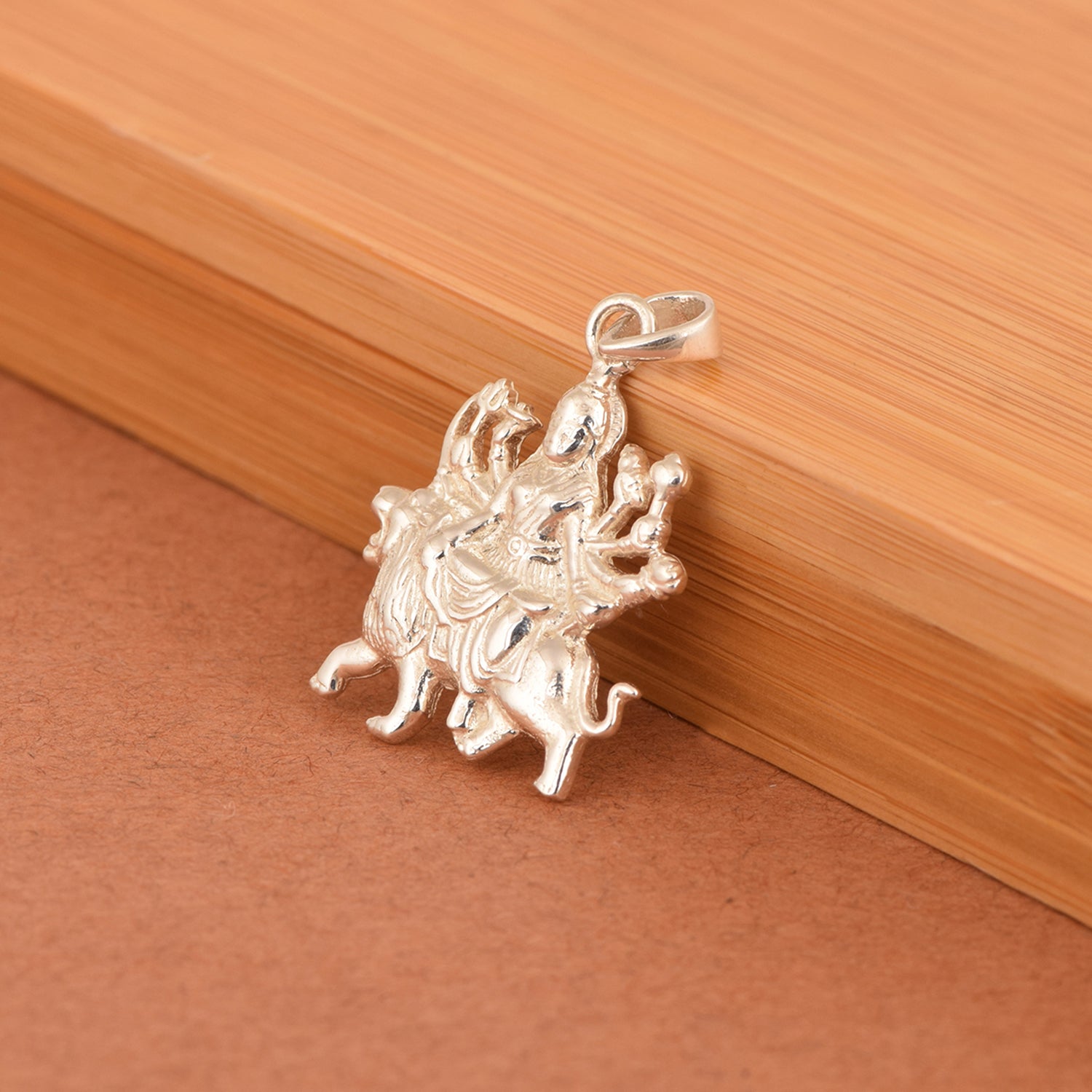 925 Sterling Silver Durga Mata Pendant – Divine Warrior Goddess Design