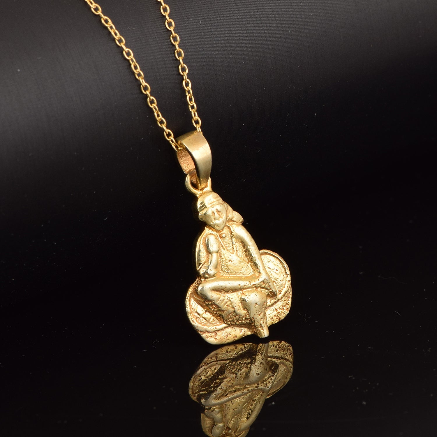 Embrace spiritual grace with this intricately crafted Sai Baba pendant, cast in solid sterling silver and finished with radiant yellow gold plating. Depicting Sai Baba in a peaceful seated pose, this devotional piece serves as a symbol of protection, faith, and blessings. Ideal for everyday wear or as a meaningful gift for loved ones.