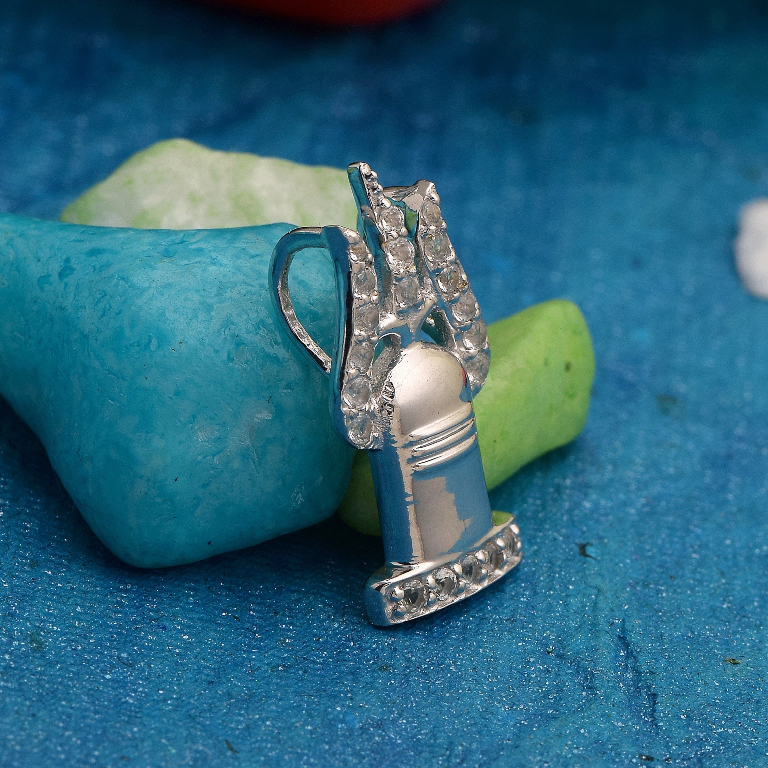 925 Sterling Silver Shivling Trishul Pendant with White CZ – 1.02 Ct, 4.18 Gm