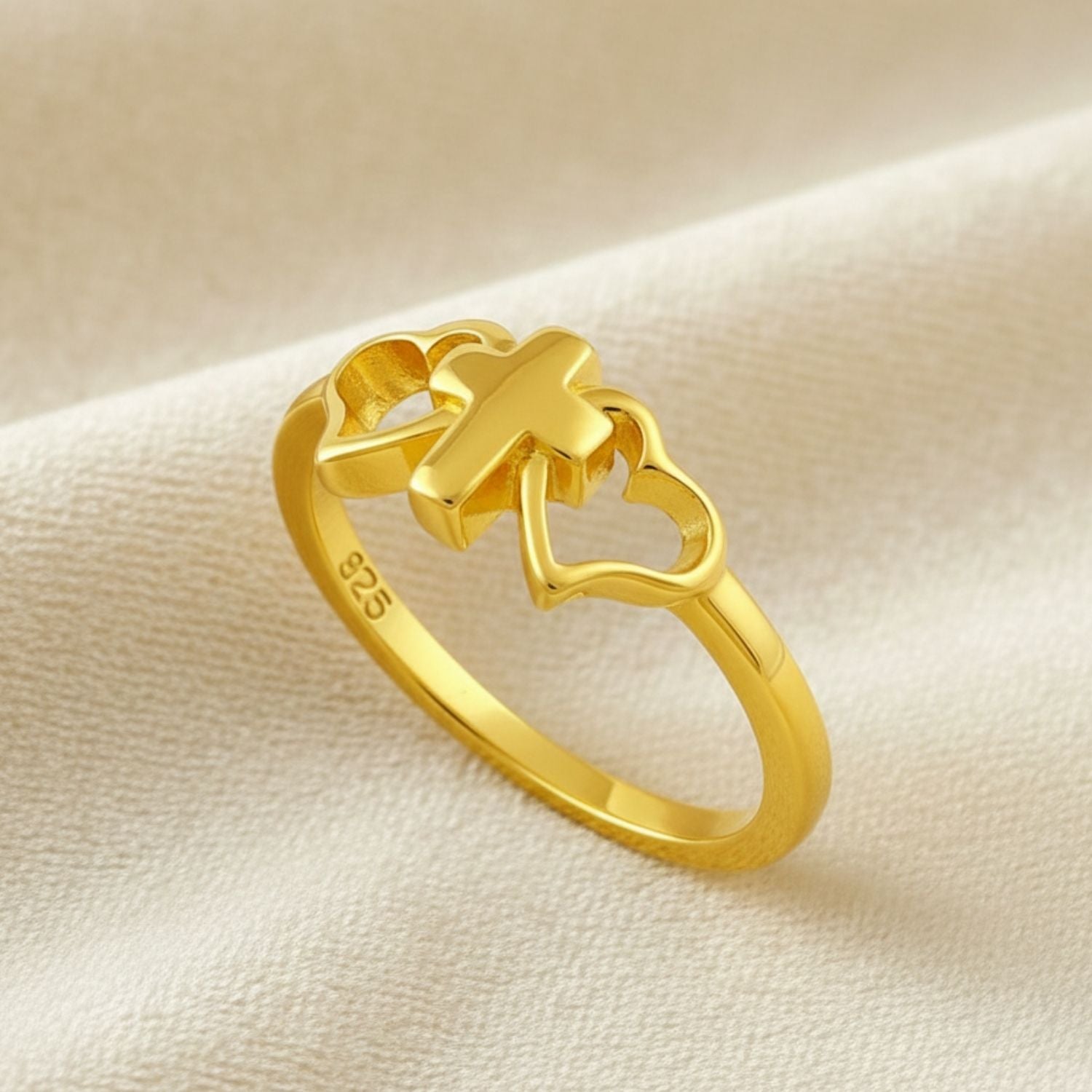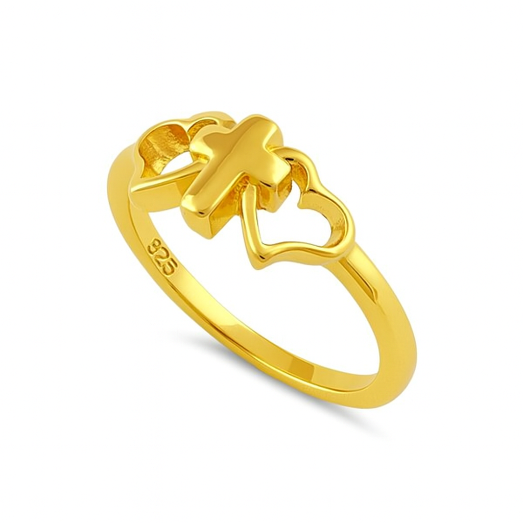Cross & Heart Ring - Sterling Silver