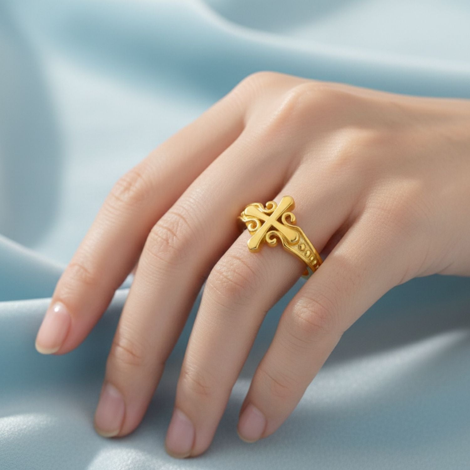 Ornate Cross Ring - Sterling Silver