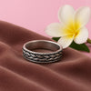 This striking men’s band ring is crafted from solid 925 sterling silver and features an oxidized leaf-inspired motif that exudes rugged sophistication. The intricate pattern wraps seamlessly around the band, highlighted by a detailed rope-edge border for added texture. Whether worn daily or reserved for special occasions, this ring is a statement of style and strength.