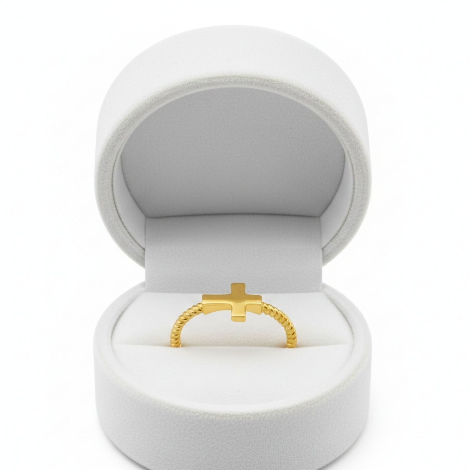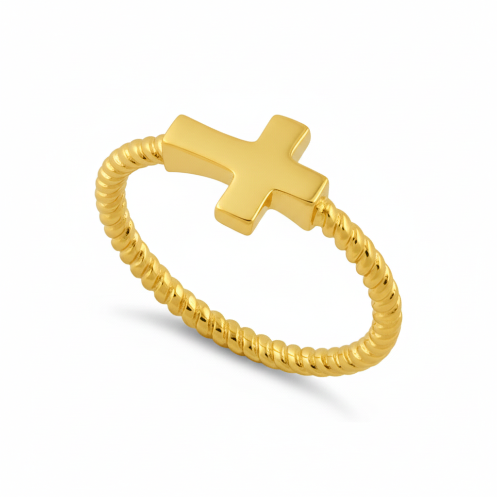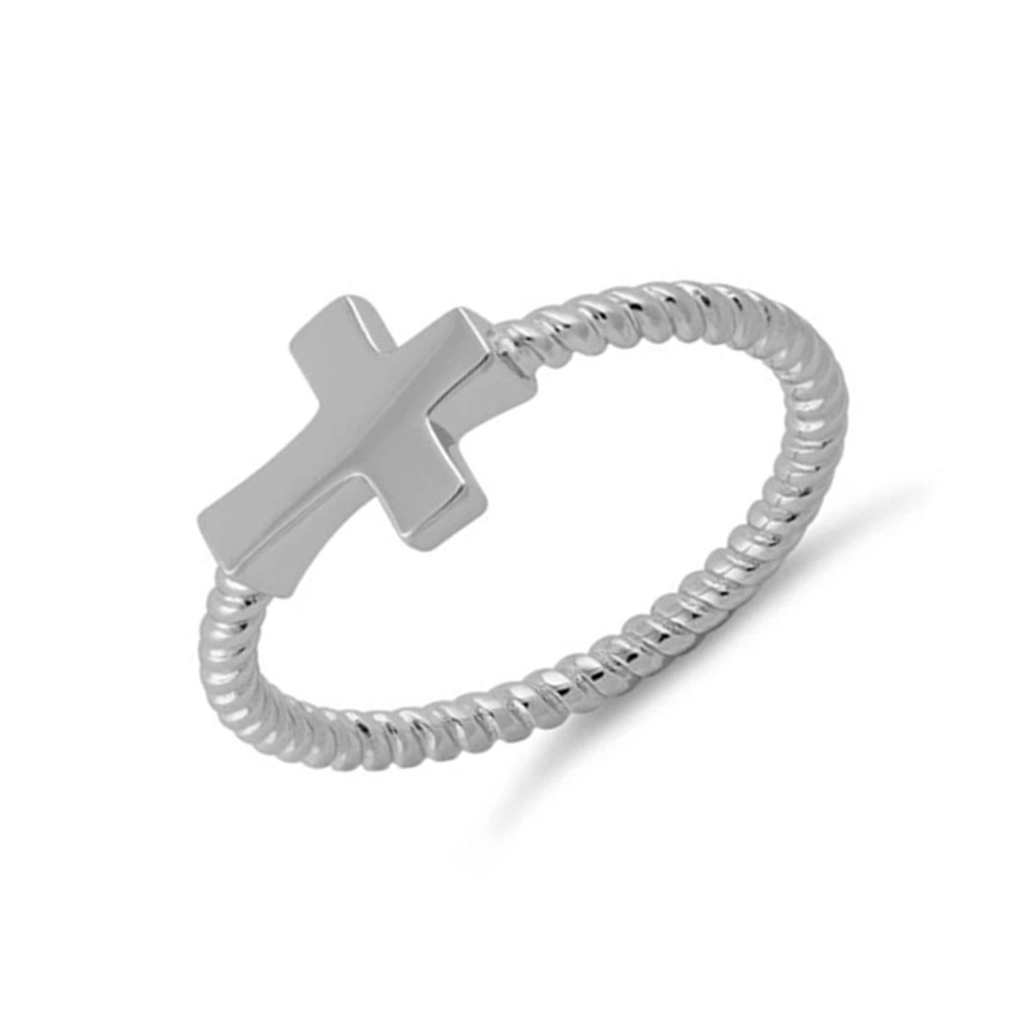 Twisted Rope Band Cross Ring - Sterling Silver