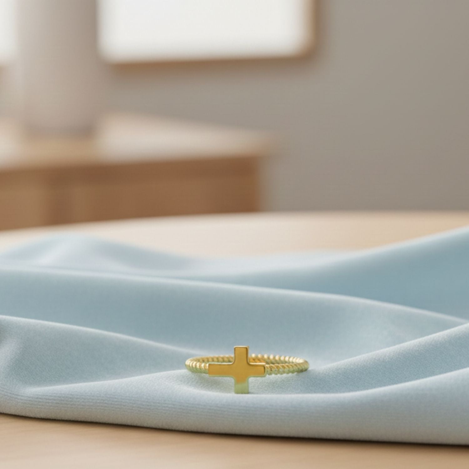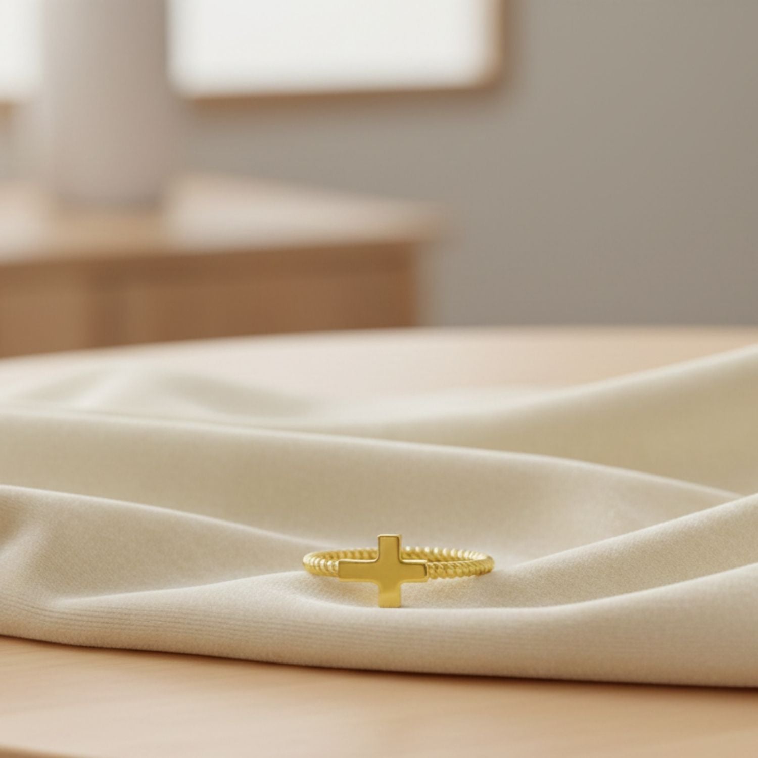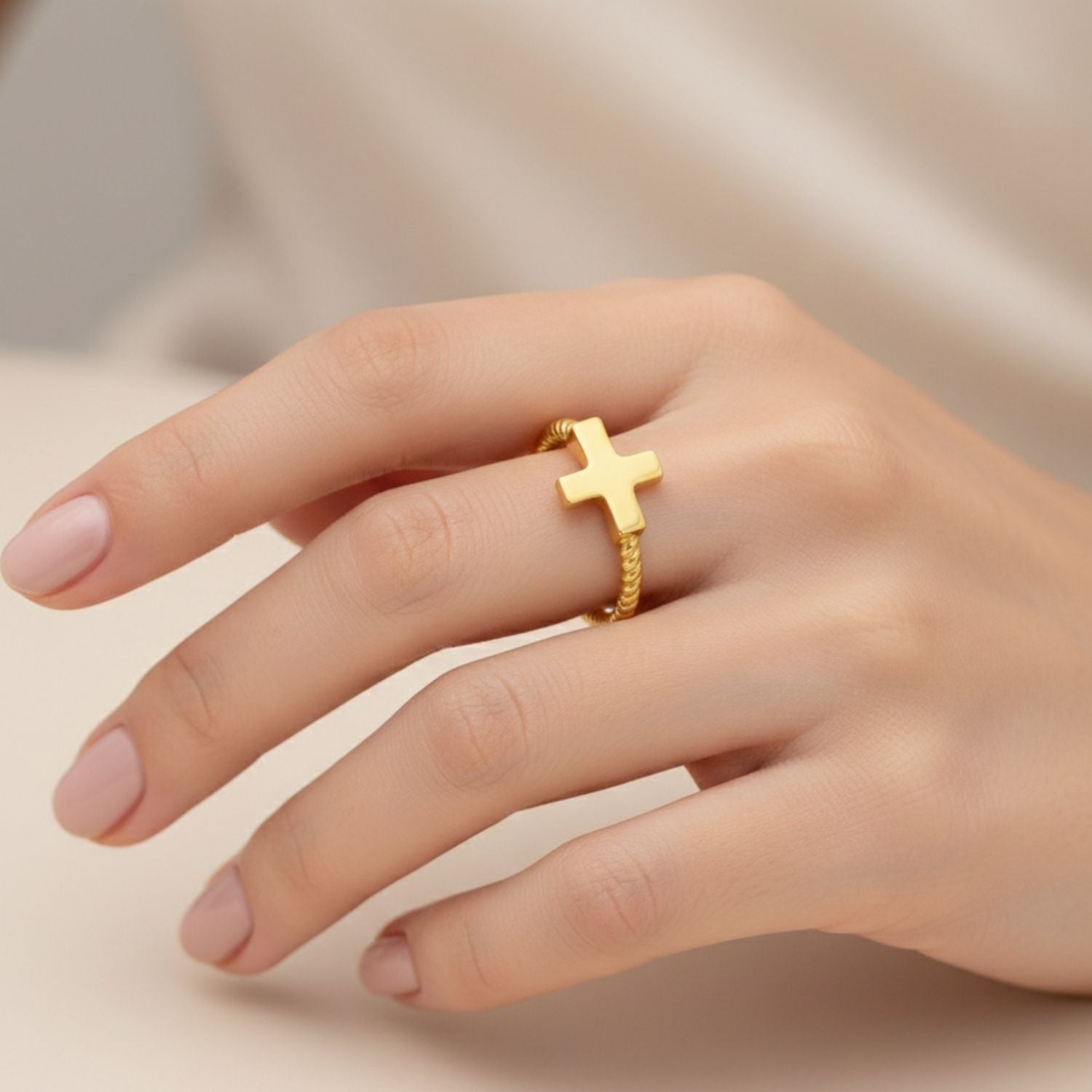 Twisted Rope Band Cross Ring - Sterling Silver