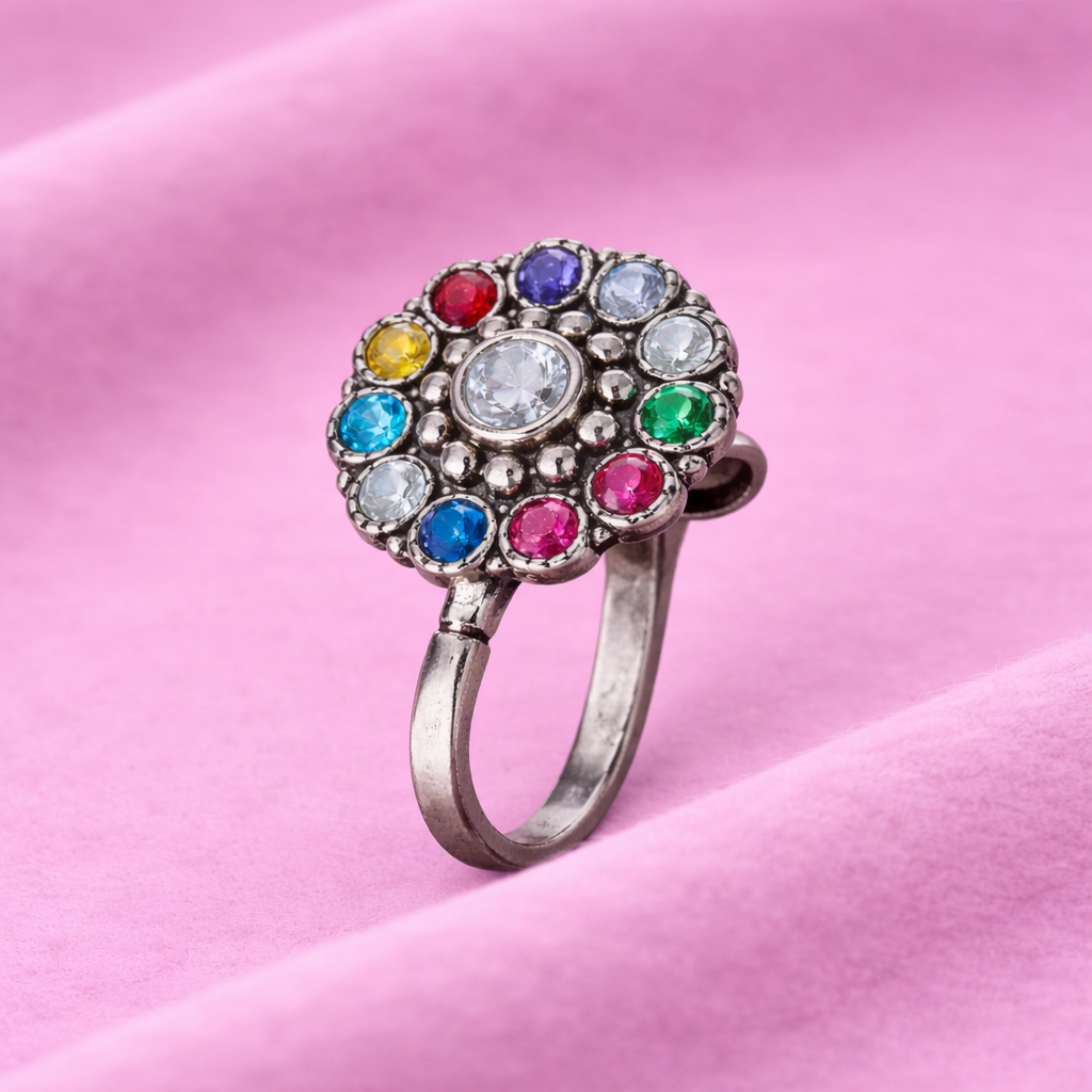 Stone: Multicolor Cubic Zirconia with white CZ center (Navratna-inspired)