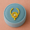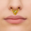 Adorn your look with divine artistry through this gold-plated 925 sterling silver Navratan septum nose ring. Its round floral mandala centerpiece radiates with nine sacred gemstones, each representing a celestial planet. The intricate beaded detailing and central white stone add depth and brilliance, making it a striking symbol of harmony, beauty, and prosperity. Ideal for festive wear or statement styling.