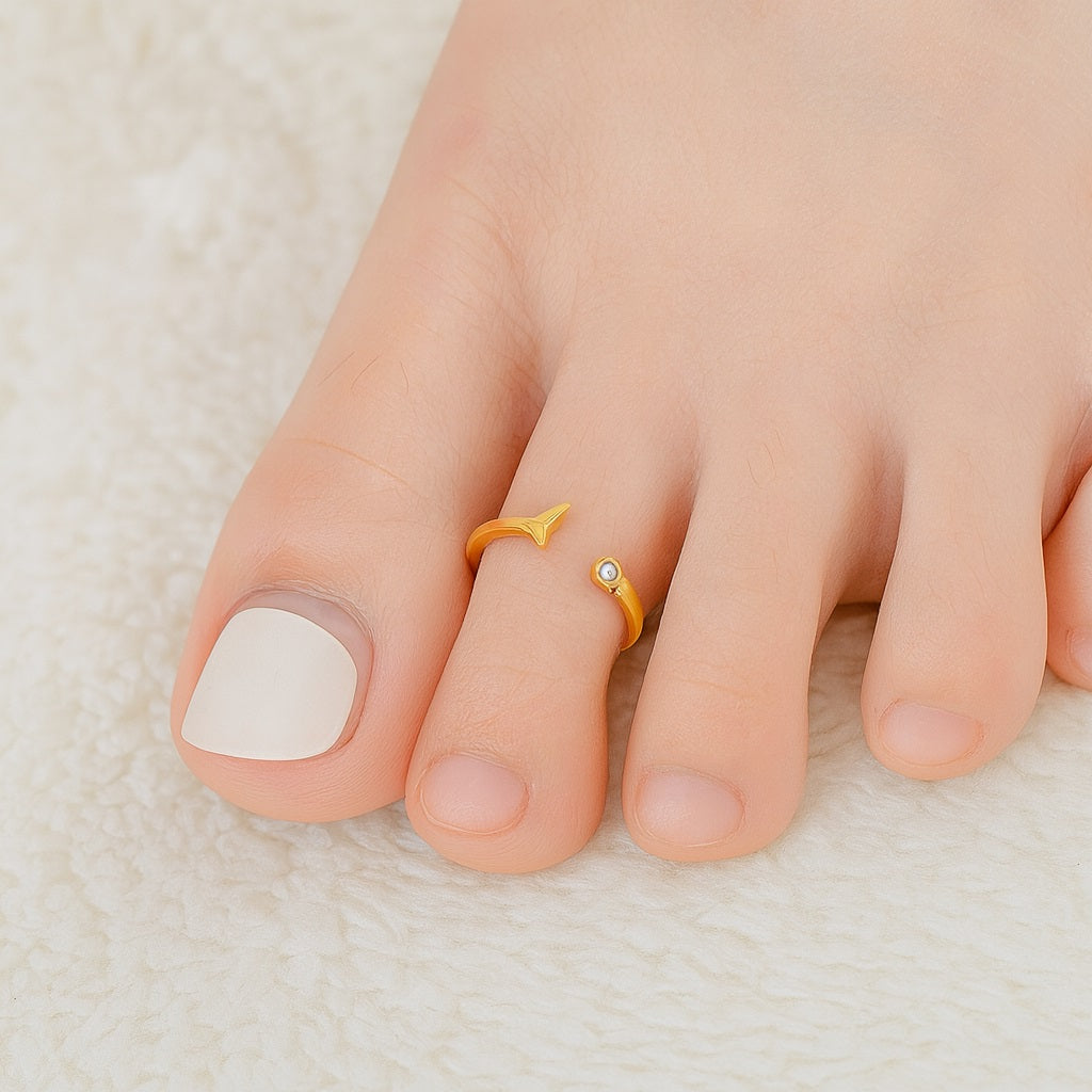 This trendy arrow toe ring is crafted from solid 925 sterling silver and finished with a radiant yellow gold plating for a chic contemporary look. The open-band design features a sleek arrow motif on one end and a bezel-set cubic zirconia on the other, adding a subtle sparkle. Lightweight and adjustable, it offers a comfortable fit for everyday wear, vacations, or stylish summer outfits.