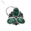 Add a radiant floral accent to your nose with this intricately crafted cluster nose pin. Featuring a trio of dazzling oval-cut green cubic zirconia stones surrounded by petite rounds, the arrangement blooms like a delicate flower in full sparkle. Set in oxidized 925 sterling silver, this nose pin exudes vintage elegance with a secure and stylish finish.